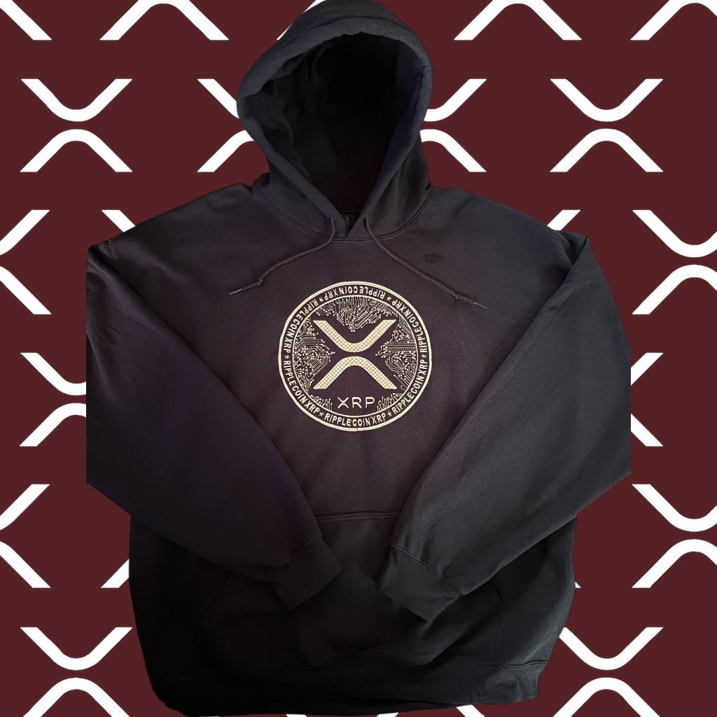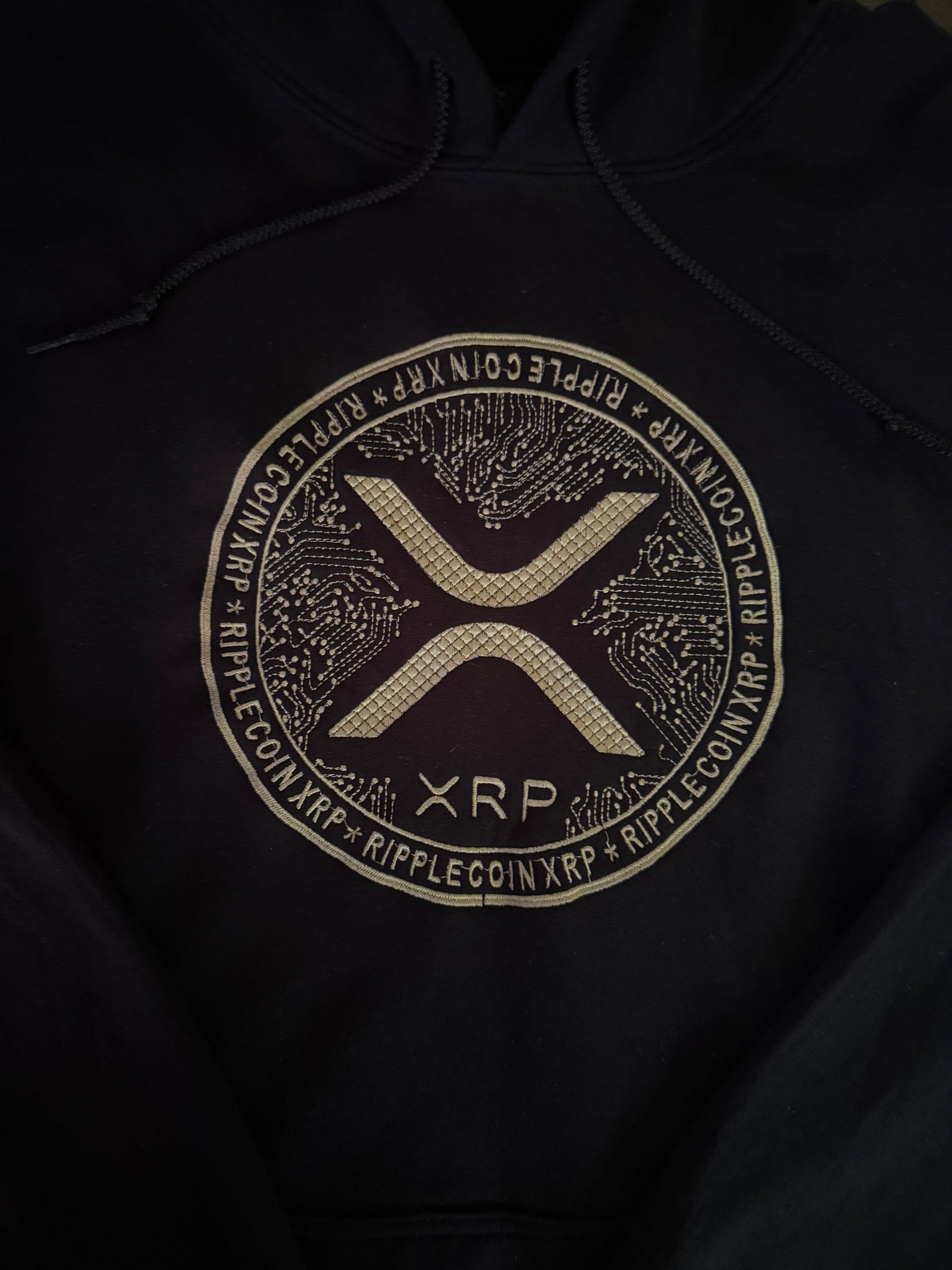 Custom XRP embroidered pull over hoodie. High Quality 100% polyester thread by Isacord40.